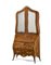 Trumeau di forma mossa e bombata lastronato in palissandro, filettato in bois d