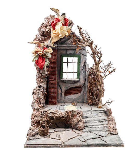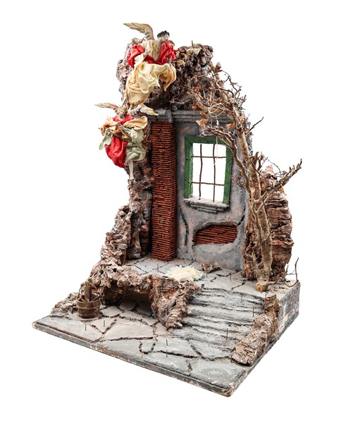 Arte napoletana, secolo XX. Lotto composto da una struttura da presepe in legno