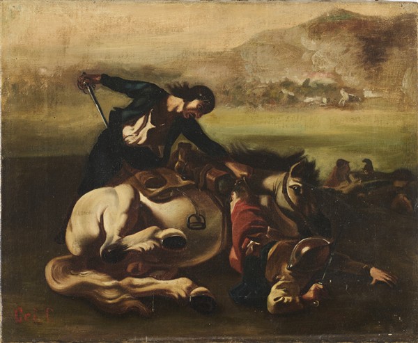 Scuola del secolo XIX "Scene di battaglia" coppia di dipinti ad olio su tela (