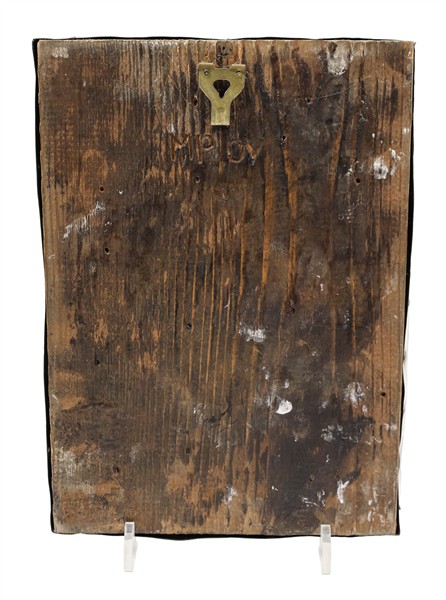 Lotto composto da un'icona con riza in metallo argentato (cm 27x20), una placchetta in rame sbalzato e argentato e teste d'angelo, due miniature e un cofanetto (difetti e mancanze)