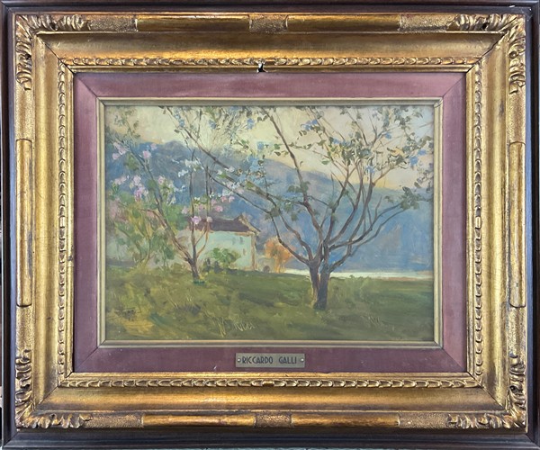 Riccardo Galli "Alberi in fiore" olio su compensato (cm 25x35) firmato e dedica