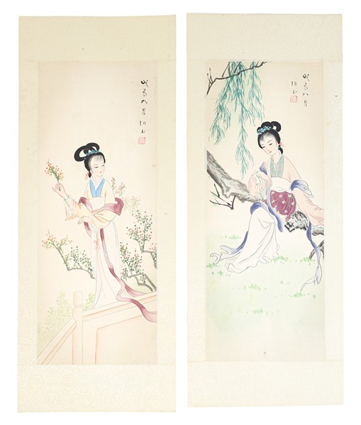 Lotto composto da quarantaquattro stampe su seta raffiguranti figure femminili