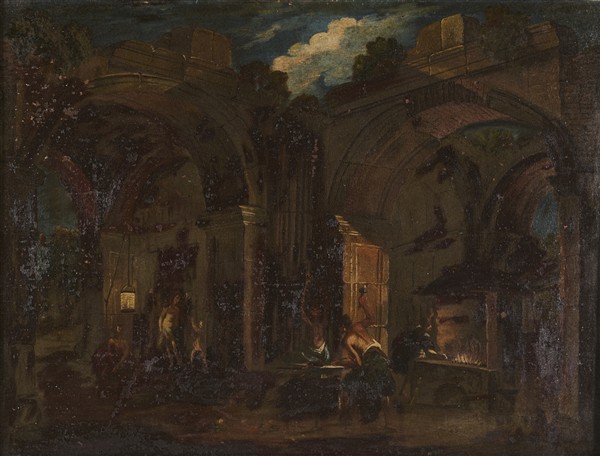 Scuola emiliana del secolo XVIII "Storia di Salomone (?)" e "Interno di fucina