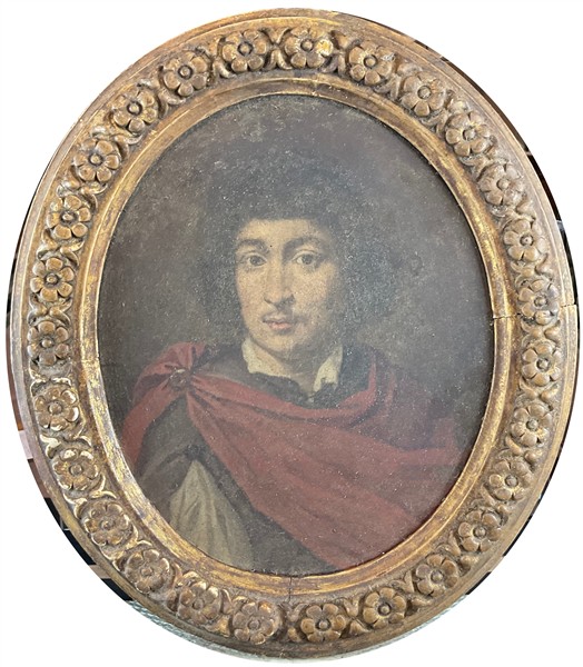 Ignoto Antico dipinto raffigurante "Ritratto virile" olio su cartone applicato