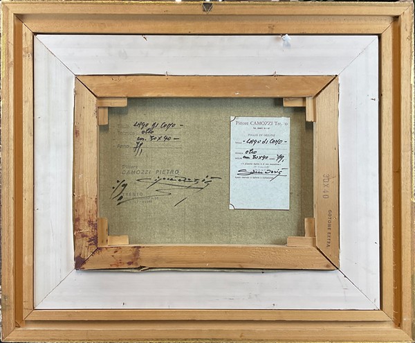 al retro: firma, titolo, iscrizione e cartiglio del pittore