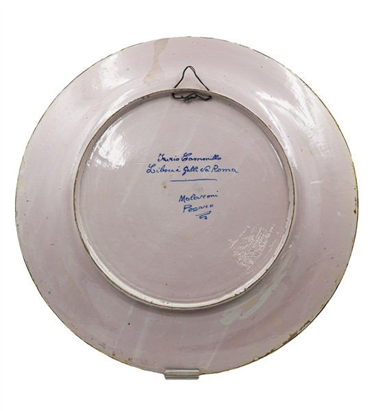 Manifattura Molaroni, Pesaro, fine secolo XIX. Piatto istoriato in ceramica pol