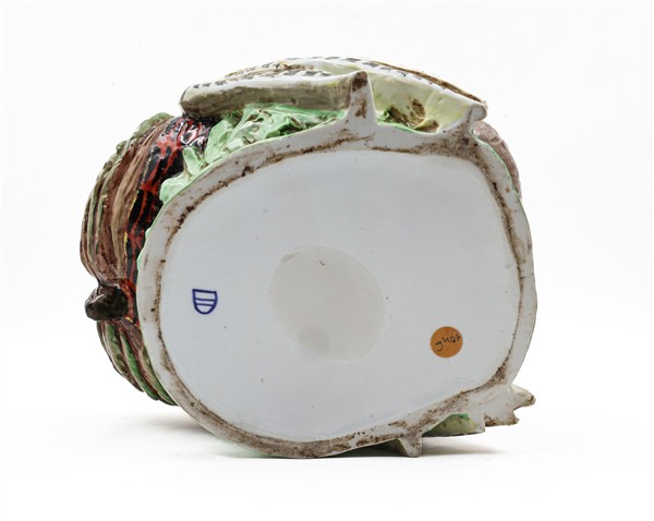 Lotto 1207 | Contenitore con coperchio a forma di tacchino in porcellana policroma con presa