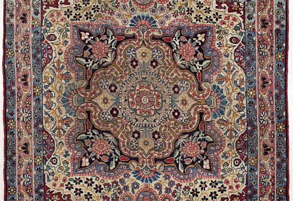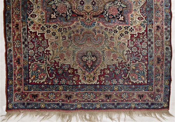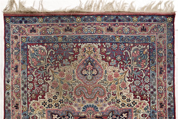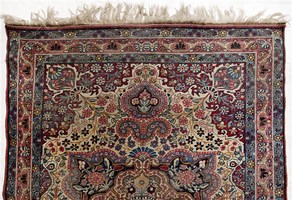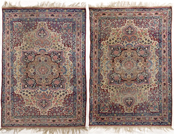 Coppia di tappeti Joravan, Persia, secolo XX. Medesimo decoro formato da medaglione polilobato policromo su fondo bianco (cm 209x138) (difetti e rapature, restauri alle frange)