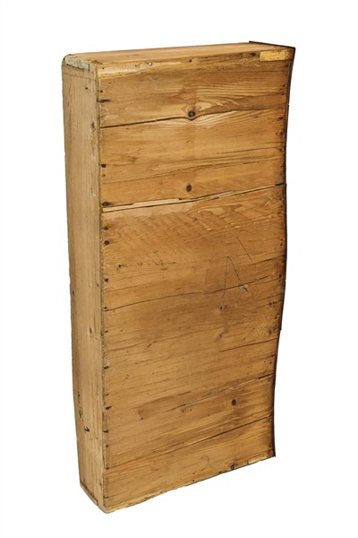 Ribalta lastronata in noce e filettata in legni di varia essenza con specchiatu