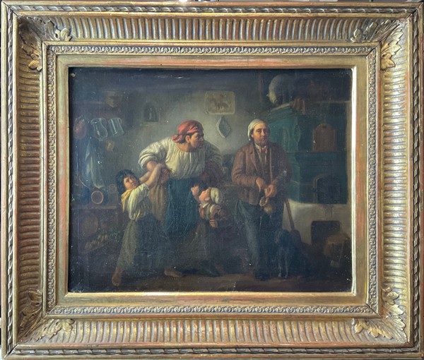 Ignoto del secolo XIX "Scena di genere" olio su tela (cm 32,5x40) in cornice