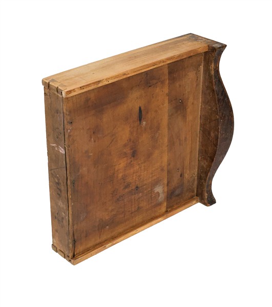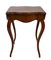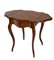 Tavolino ad alette di forma sagomata, lastronato in legni vari e decorato a mar