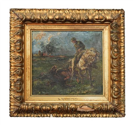 Vittorio Cajani (Attribuito) "Il riconoscimento" olio su tela appicata su tavo