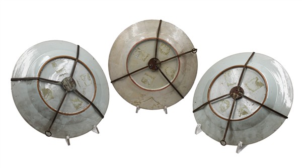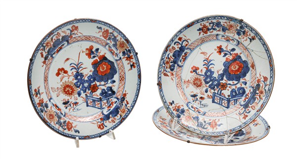Tre piatti circolari in porcellana Imari Cina, dinastia Qing (1644-1911) secolo