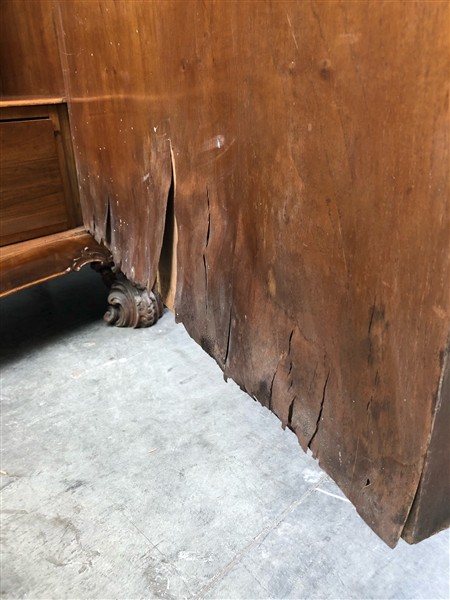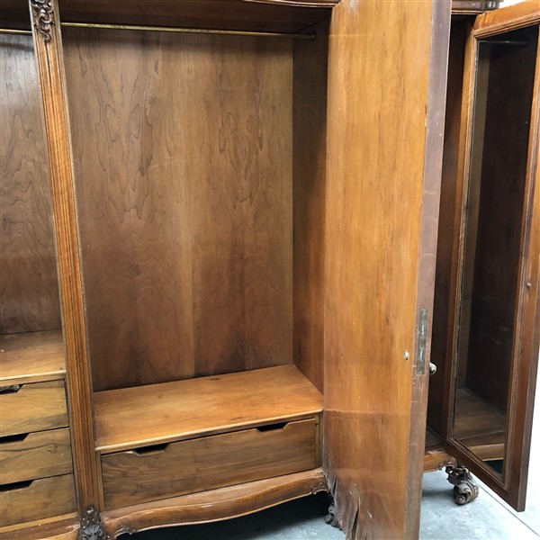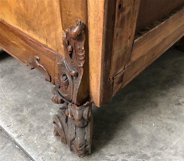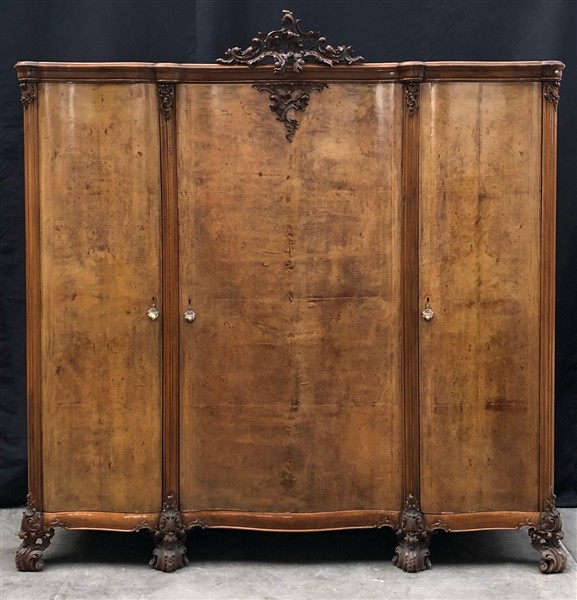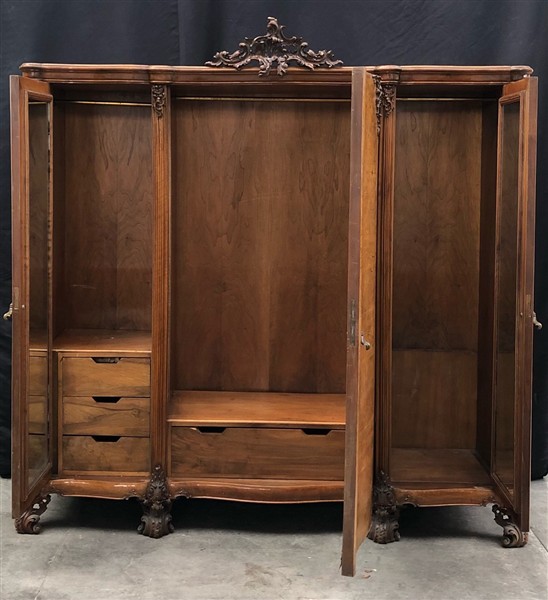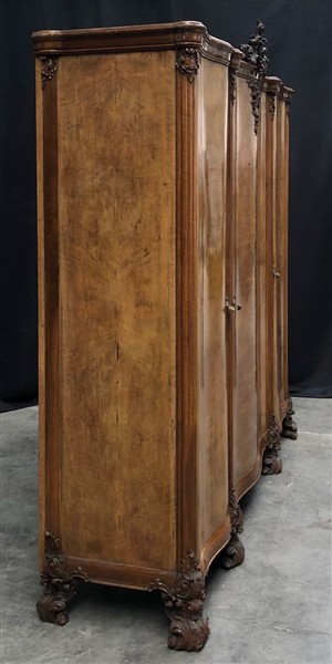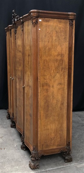 Lotto 1333 | Armadio a tre ante in stile Chippendale in legno intagliato e impiallacciato in