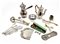 Due cartoni contenenti numerosi oggetti in metallo argentato di forme, usi e de