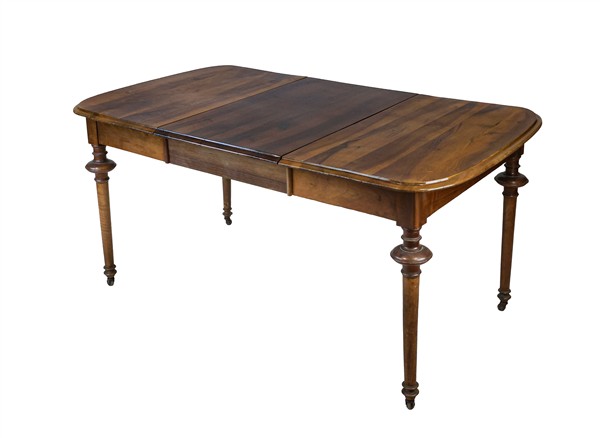 Tavolo allungabile in legni vari con gambe tornite munite di rotelle (aperto cm