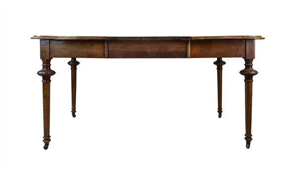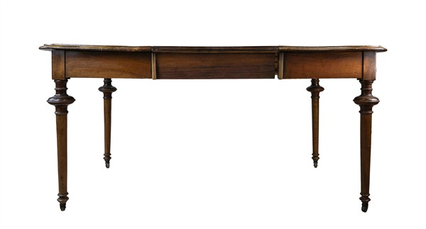Tavolo allungabile in legni vari con gambe tornite munite di rotelle (aperto cm 160x77x90) (difetti e restauri)
