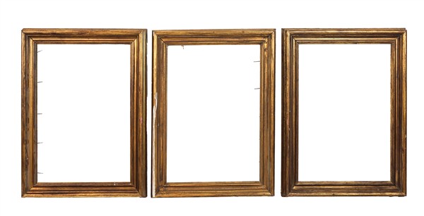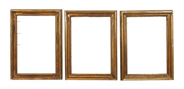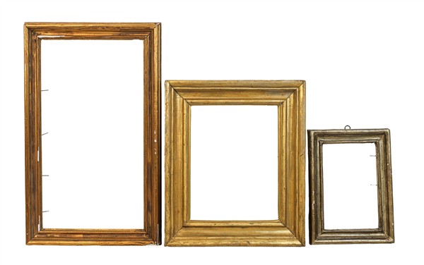 Cartone contente nove diverse cornici in legno dorato di epoche e misure divers
