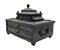 Antica scatola portagioie a due cassetti in legno ebanizzato e parzialmente dipinto a finta tartaruga, piano con intagli guilloché sormontato da urna con coperchio ribaltabile celante specchio, maniglie laterali in metallo (cm 38x28x26) (difetti e mancanze)