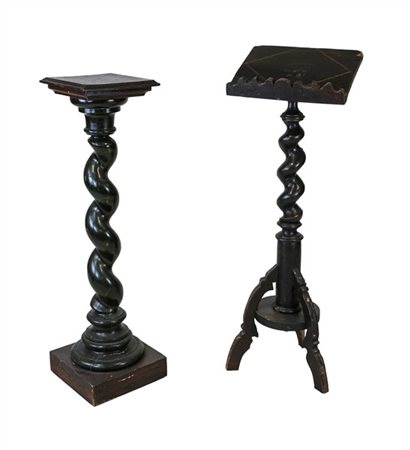 Lotto composto da un leggio tripode e una colonna portavaso con fusti a torciglione (h max cm 112) (difetti e mancanze)