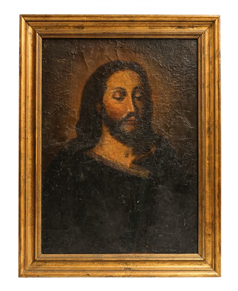 Lotto composto da un dipinto ad olio su tela raffigurante Cristo (cm 57x42) in