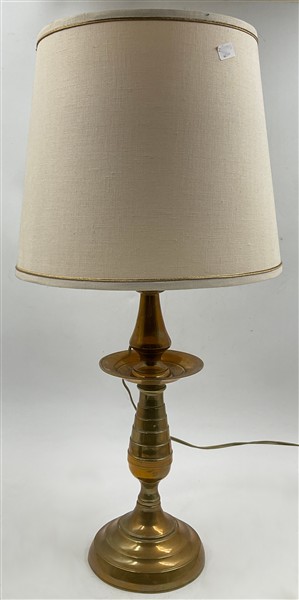 Lampada da tavolo in ottone con fusto scanalato con paralume (h tot cm 60) (dif