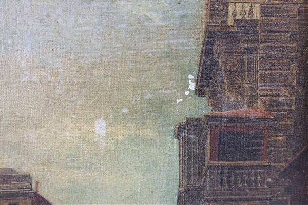 Scuola del secolo XIX "Porto di Ripetta, Roma" olio su tela (cm 31,5x41) al r