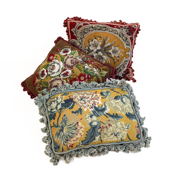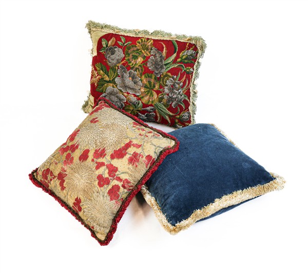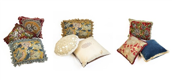 Tre cartoni contenenti numerosi cuscini di fogge, dimensioni ed epoche differenti (difetti)