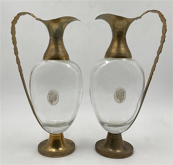 Lotto 1450 | Coppia di caraffe con corpo in vetro decorato da profilo femminile entro riserv