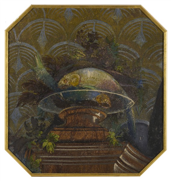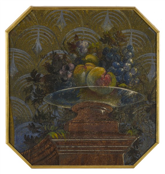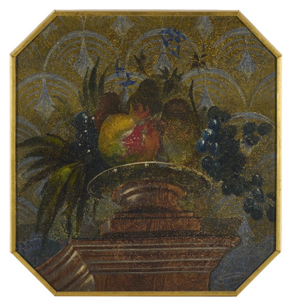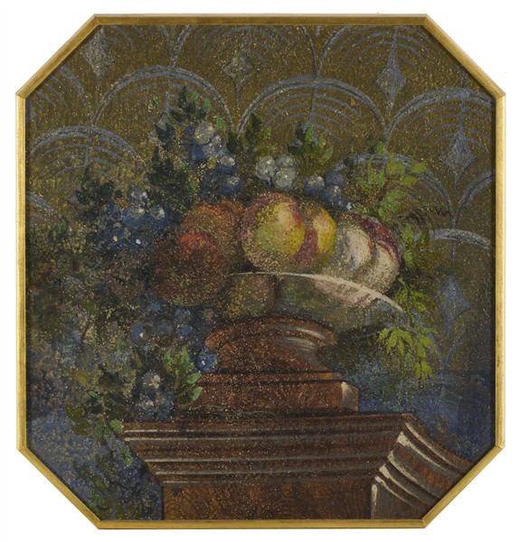 Gruppo di sei pannelli su tavoletta con cartelle dipinte a vaso di fiori, di forma ottagonale di cui due su pannello rettangolare (cm 36x40; cm 80x40) (difetti)