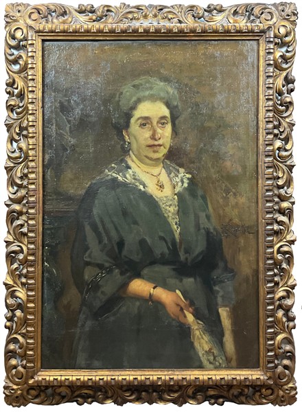 Lotto 1469 | Enrico Ravetta "Ritratto della moglie Teresa Gasparini" olio su tela (cm 100x78