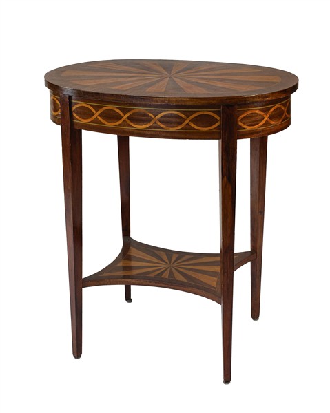 Lotto composto da un gueridon a due ripiani di forma ovale lastronato, filettat