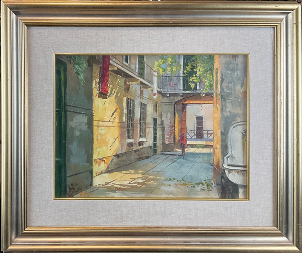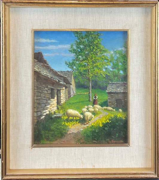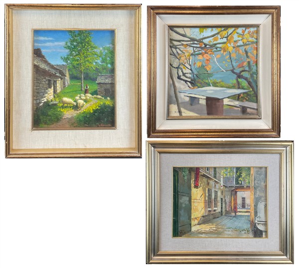 Lotto di tre dipinti ad olio del secolo XX raffiguranti paesaggi, autori e misu