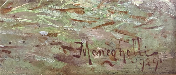 Enrico Meneghelli "La fienaiola" olio su compensato (cm 21x27) in cornice (dife