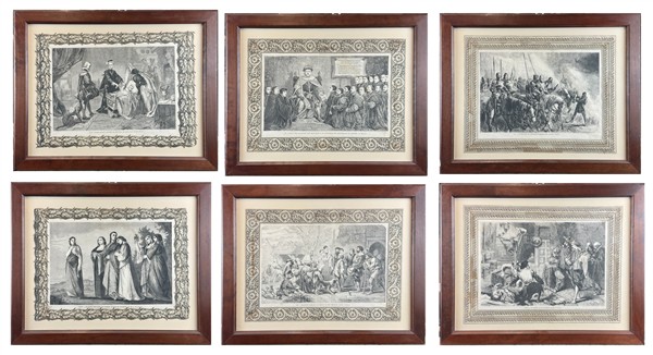 Lotto 1529 | Gruppo di sei riproduzioni francesi raffiguranti scene storiche e letterarie, i