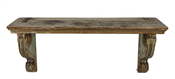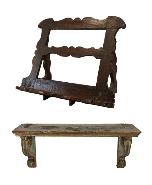 Lotto composto da un leggio d'appoggio in legno sagomato (cm 51x45x29) e una mensola con sostegni a voluta in legno laccato e dorato (cm 45x19x15) Secolo XVIII (difetti)