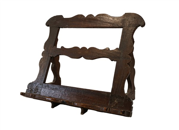 Lotto composto da un leggio d'appoggio in legno sagomato (cm 51x45x29) e una me