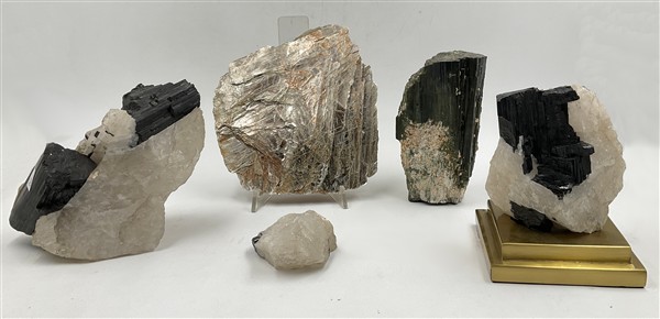 Lotto 1590 | Lotto composto da cinque diversi frammenti di minerali, uno con base in metallo