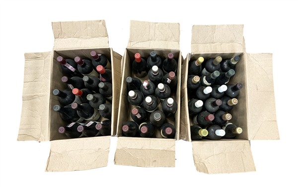 Lotto composto da oltre 20 bottiglie di vino in tre cartoni, tra le quali Nuovo