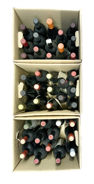 Lotto 1603 | Lotto composto da oltre 20 bottiglie di vino in tre cartoni, tra le quali Nero