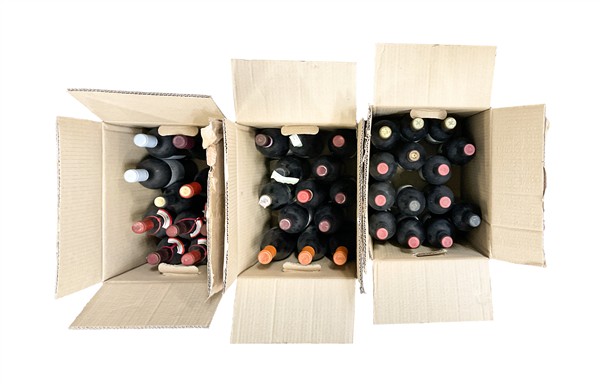 Lotto composto da oltre 20 bottiglie di vino in tre cartoni, tra le quali Anton