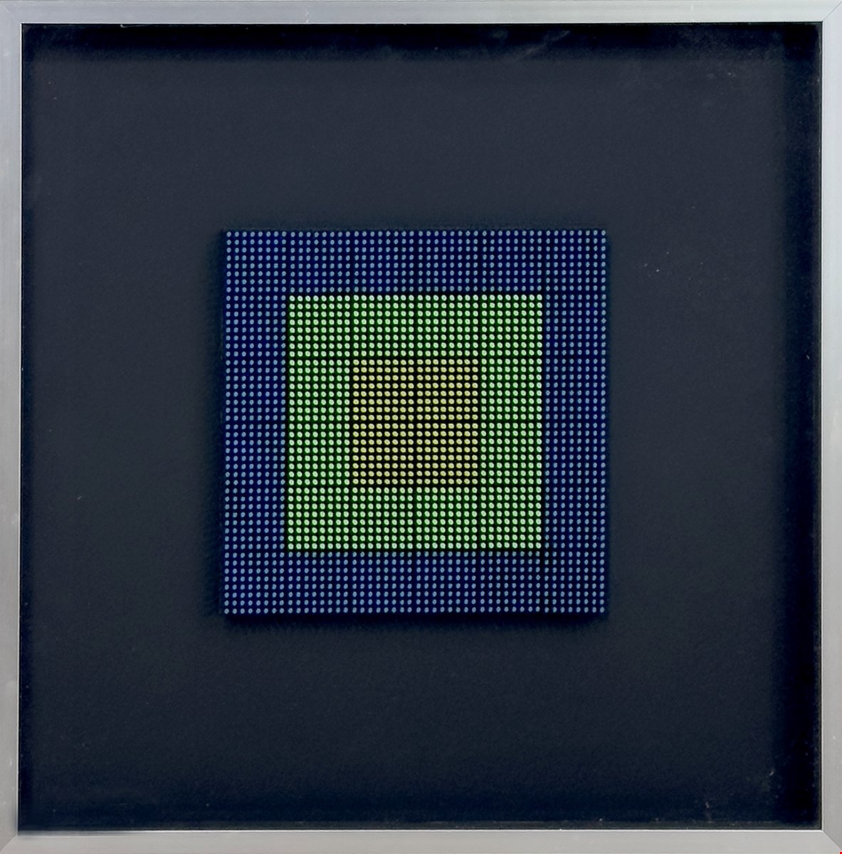 Franco Costalonga, Operazione QSD EG, anni Settanta, Gradienti di luminosità e cilindretti plastici su plastica, cm 24x24, Autentica a cura dell'artista, Cornice in omaggio