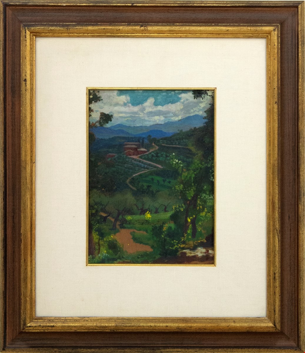 Gerardo Dottori, Paesaggio Campestre, Prima Decade del Novecento, Olio su tavola, cm 34x24, Archivio Gerardo Dottori, Firma al Verso, Cornice in omaggio