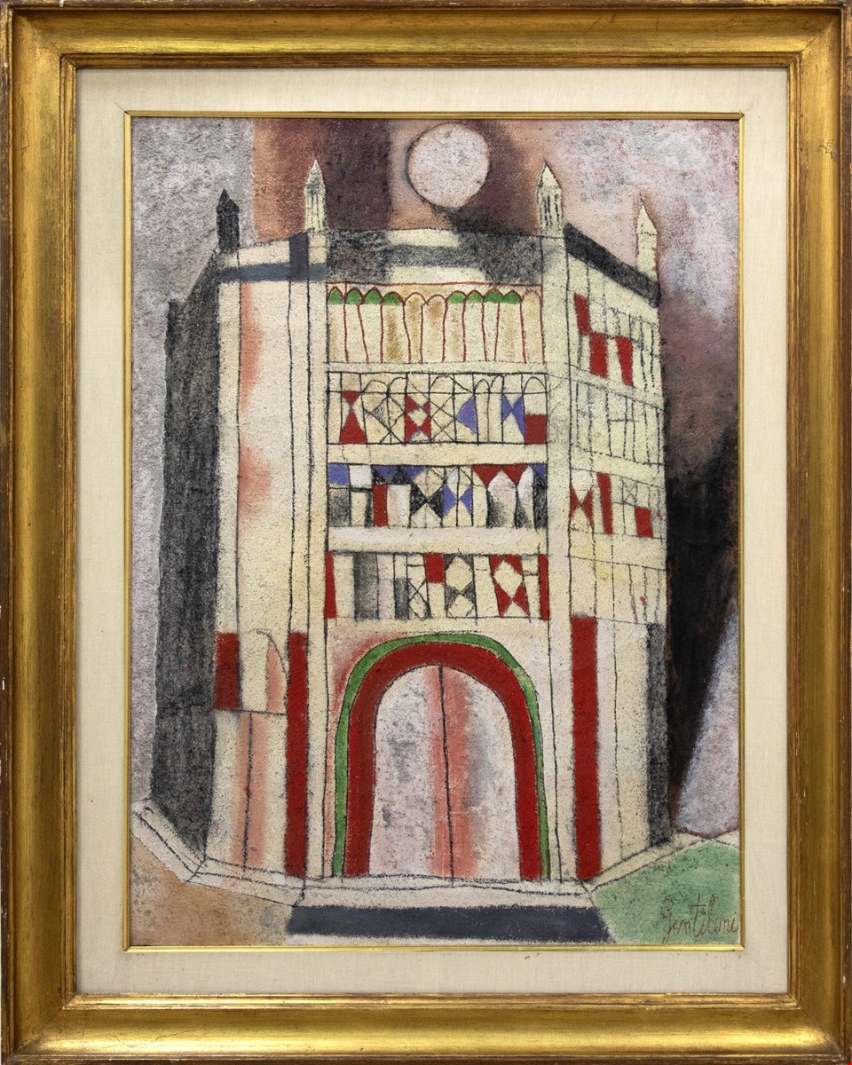 Franco Gentilini, Il Battistero, 1956, Olio su tela sabbiata, cm 73x55, Pubblicazione sul Catalogo Generale, Firma al Recto, Cornice in omaggio