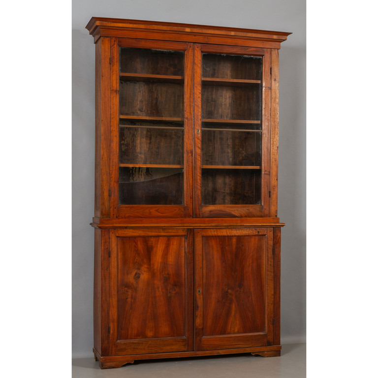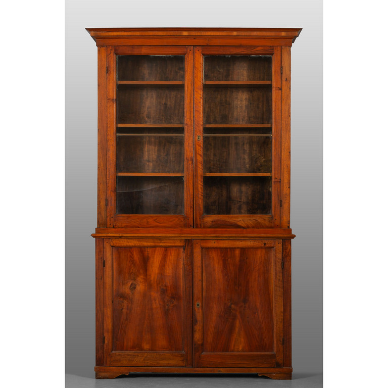 Libreria in massello parte inferiore a due sportelli parte superiore a vetrina sec.XIX