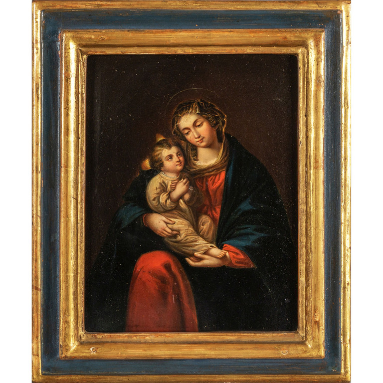 Scuola italiana sec.XIX 'Madonna con Bambino' olio su metallo