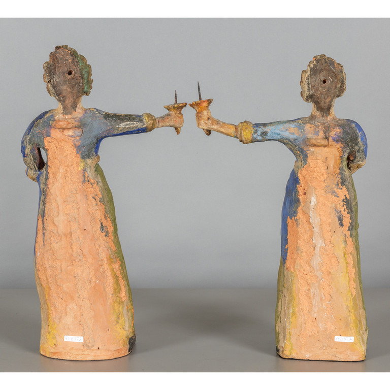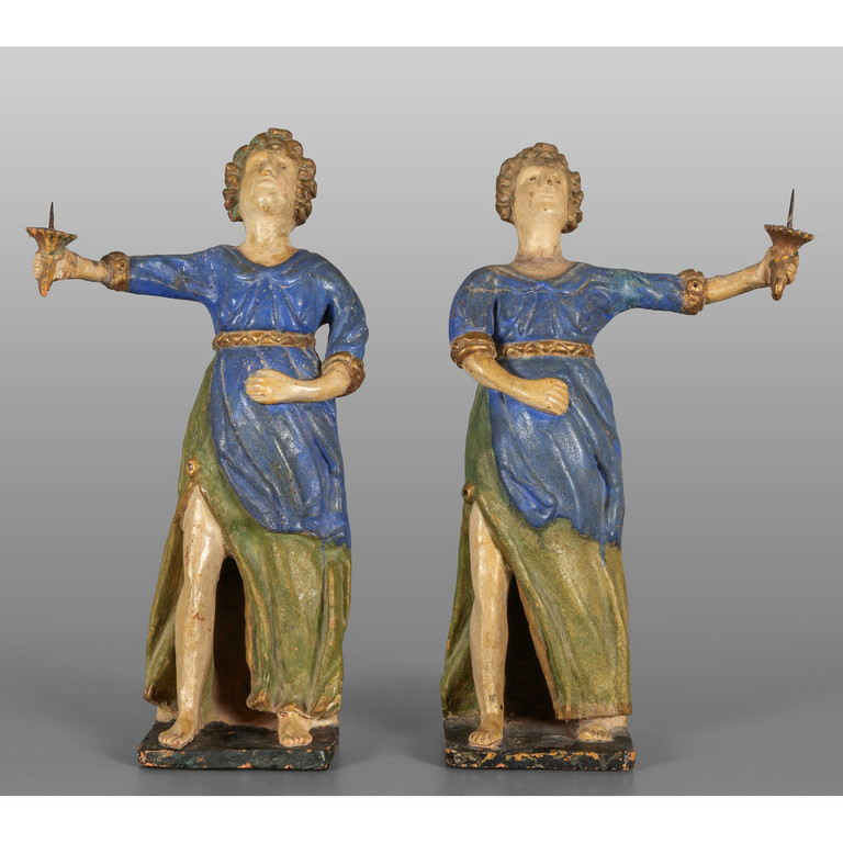 Coppia di paggi portacandele in terracotta policroma Toscana sec.XVII