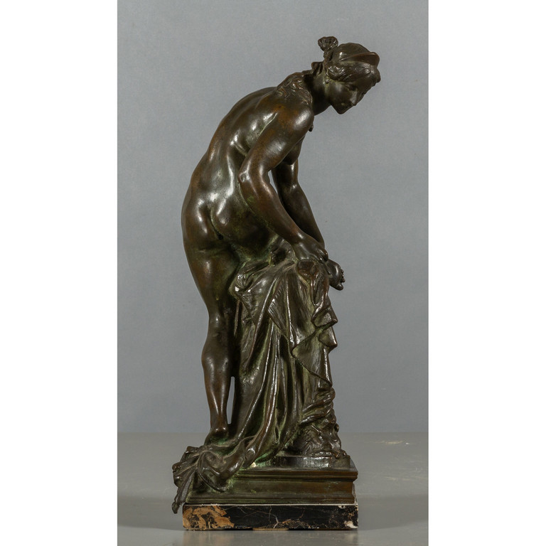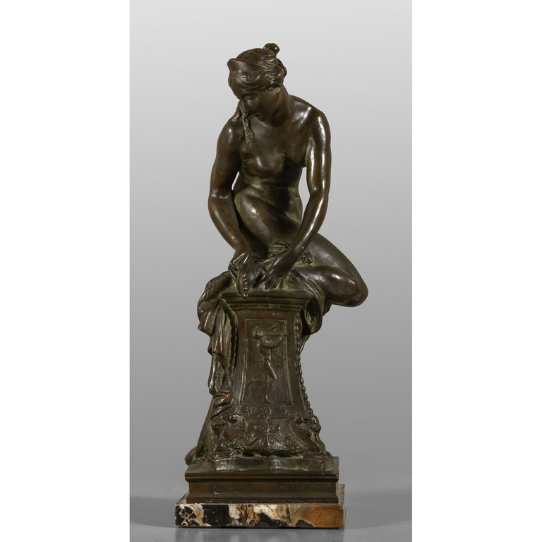 Nudo femminile scultura in bronzo poggiante su base in marmo inizi sec.XX