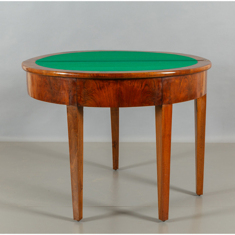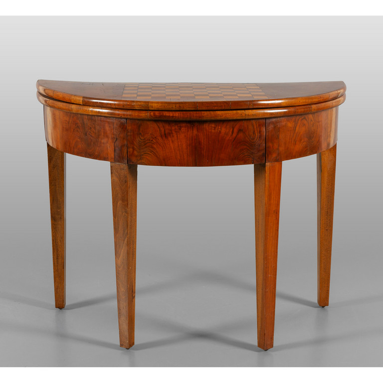 Tavolo a mezzaluna apribile in noce piano intarsiato con scacchiera Piemonte sec.XIX