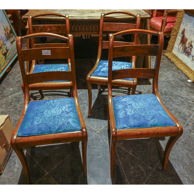Precedente Lotto 0654 Successivo Aste Boetto - Via Mura dello Zerbino 10R, 16122 Genova ASTA DI ANTIQUARIATO E ARTE ORIENTALE ASTA DI ANTIQUARIATO E ARTE ORIENTALE mercoledì 26 febbraio 2025 ore 10:00 (UTC +01:00) MOBILE Sei sedie (una con difetti) ed una sedia a gondola
